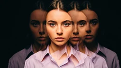 Лицо девушки крупным планом, с повторением в слегка смещенных положениях
